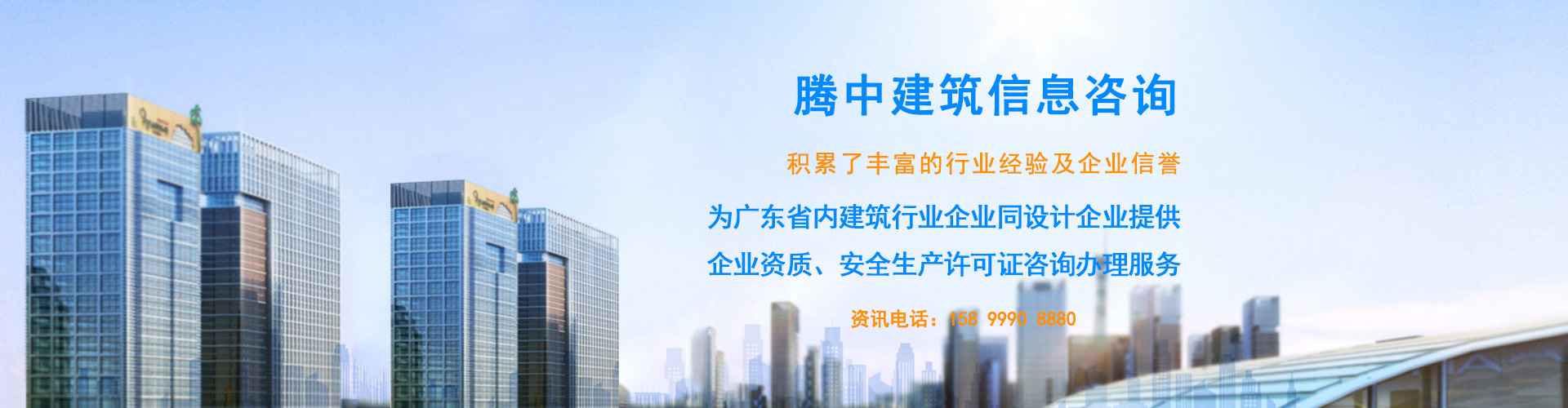 東莞市騰中建筑信息咨詢有限公司,位于東莞市住房和城鄉建設局附近。公司致力為廣東省內建筑行業企業同設計企業提供企業資質、安全生產許可證咨詢辦理服務。積累了豐富的行業經驗及企業信譽。我們的專業、誠信和高效率, 得到了建筑行業客戶的一致肯定和好評。 經營理念:受人之托、忠人之事!企業宗旨:信譽至上、誠信務實!合作觀:互信鑄基石,合作創共贏! 選擇我們的理由:100%包通過!